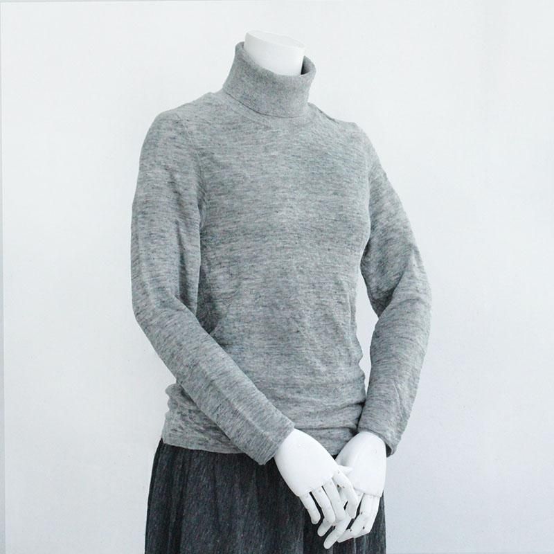 リネン100%の二重の長袖タートルネックプルオーバーが新入荷しました!