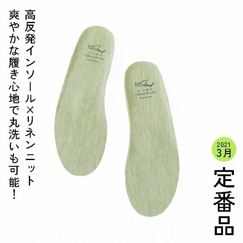 リネンのインソールは、蒸れにくく雑菌の繁殖も抑えてくれるので、素足でも快適に履いていただけます。