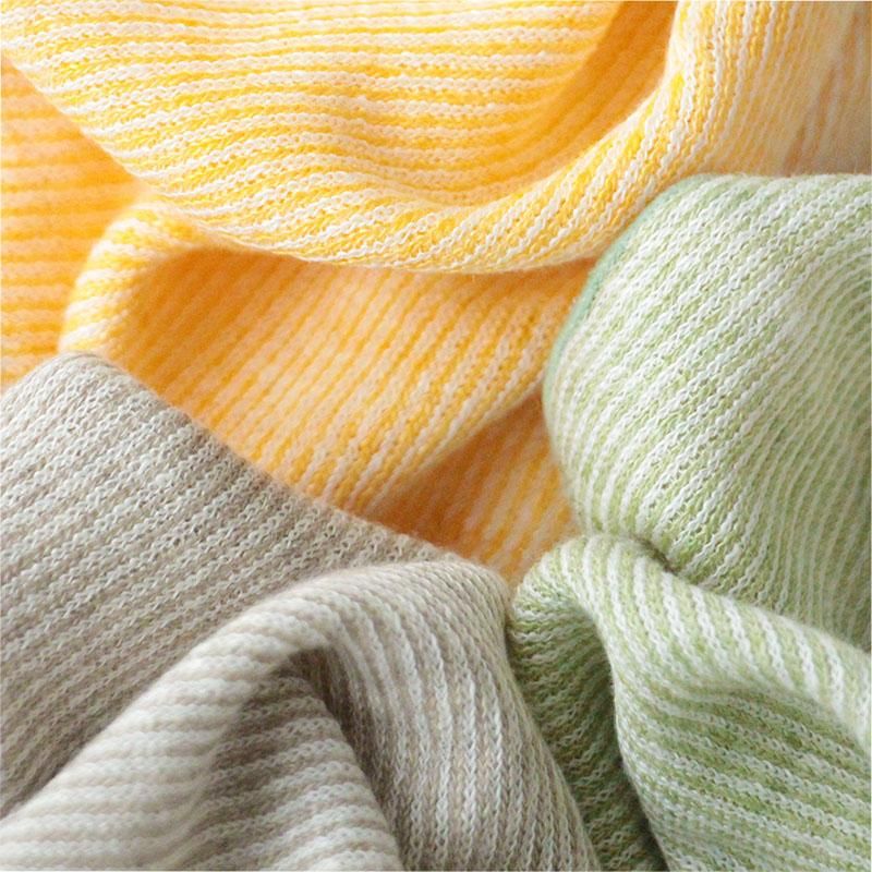 また、ネップと呼ばれる繊維が絡み合ってできた糸の節が生地表面に出ることが多くあります。節がある糸で編んでいくと、生地の表面にスジ状となったり丸いダマのように表れます。素材そのままの繊維(ワラのような表皮部分)が見られる場合もあります。ネップや繊維の出方には個体差がありますが、リネンの素朴な味としてお楽しみください。