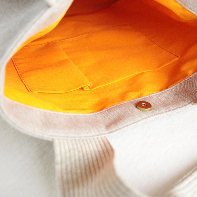 また、ネップと呼ばれる繊維が絡み合ってできた糸の節が生地表面に出ることが多くあります。節がある糸で編んでいくと、生地の表面にスジ状となったり丸いダマのように表れます。素材そのままの繊維(ワラのような表皮部分)が見られる場合もあります。ネップや繊維の出方には個体差がありますが、リネンの素朴な味としてお楽しみください。