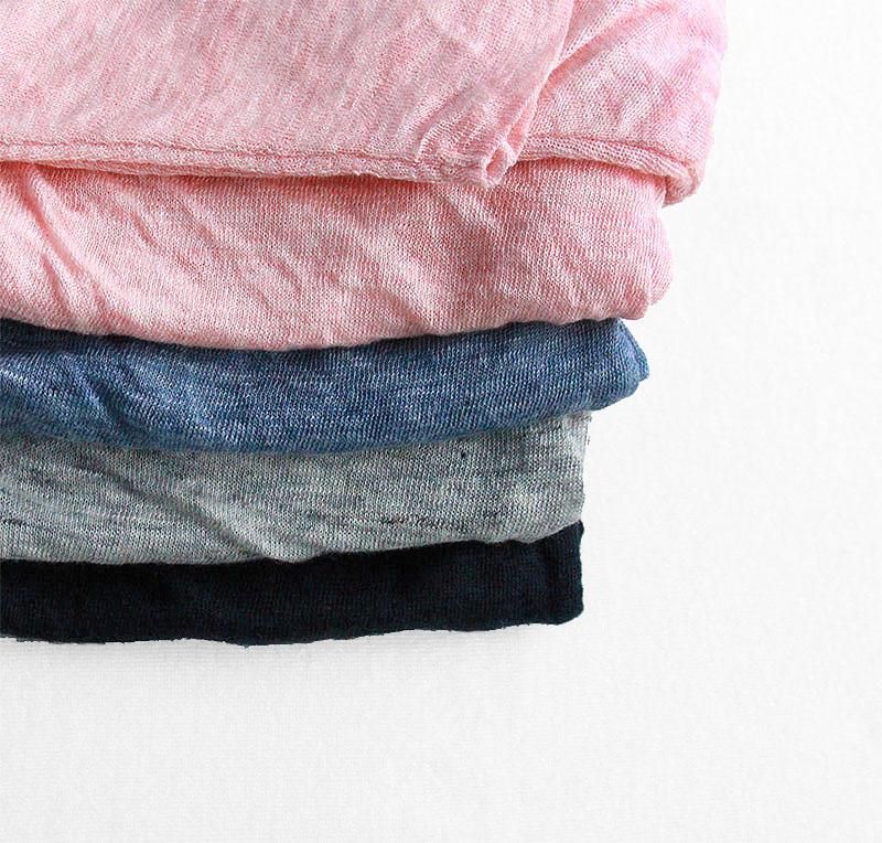リネンのニットはとても伸縮性があり、着心地が良いです。ご家庭での洗濯が可能で、お使いいただけばいただくほど、柔らかくなります。